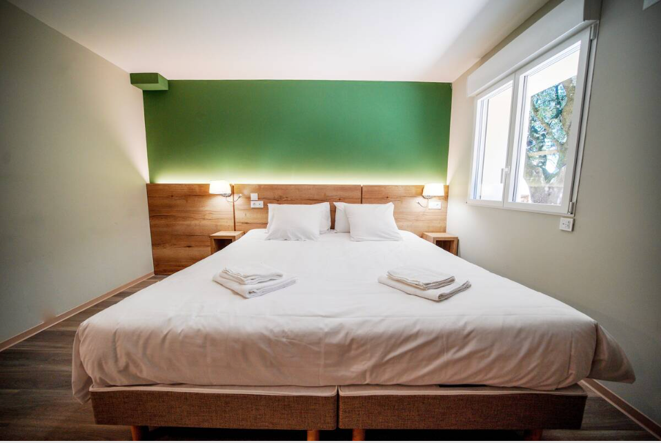 Both accommodations are located within the sports center. There is no option for external accommodation; both options include lodging.